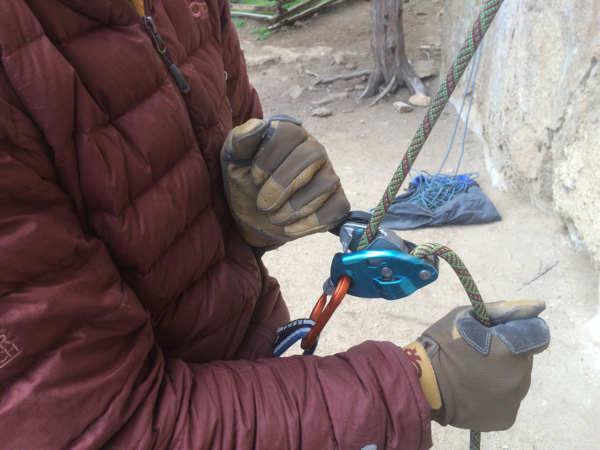 The lower auto-block friction of the ATC Guide was the primary reason we liked it more than the Petzl Reverso 4. This type of configuration, in which you use the belay device connected to an anchor to belay a second climber can be confusing. Be sure to read the manufacturer's instructions carefully.