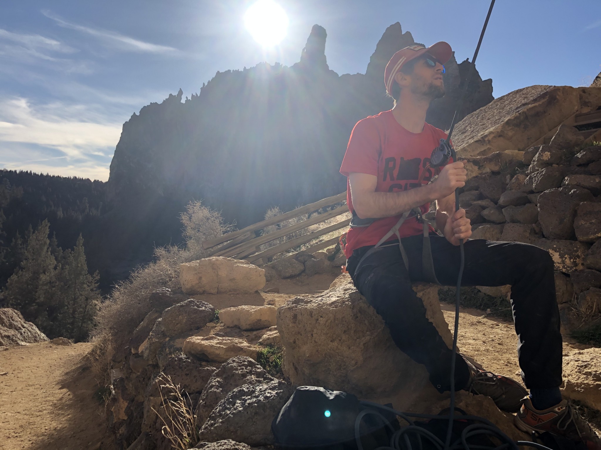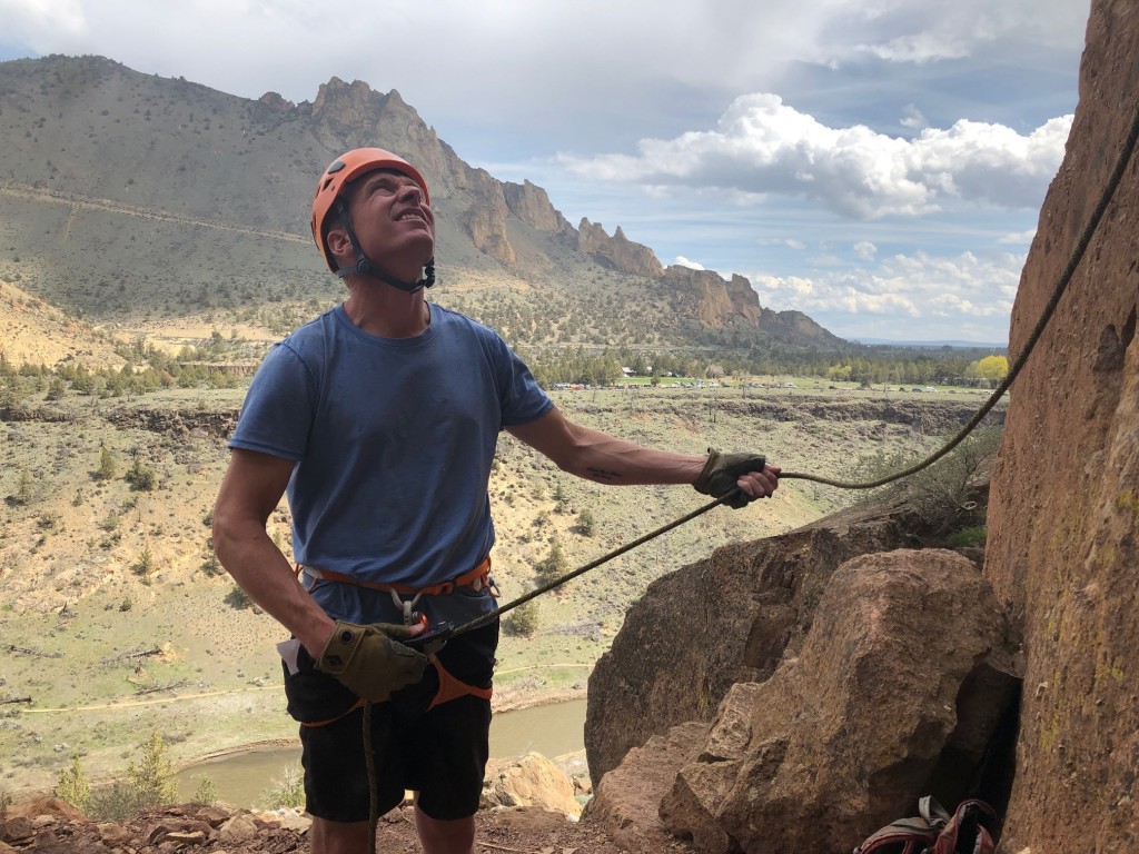 Belaying with the ClickUp+ on a peaceful afternoon in the sun at Smith Rock.