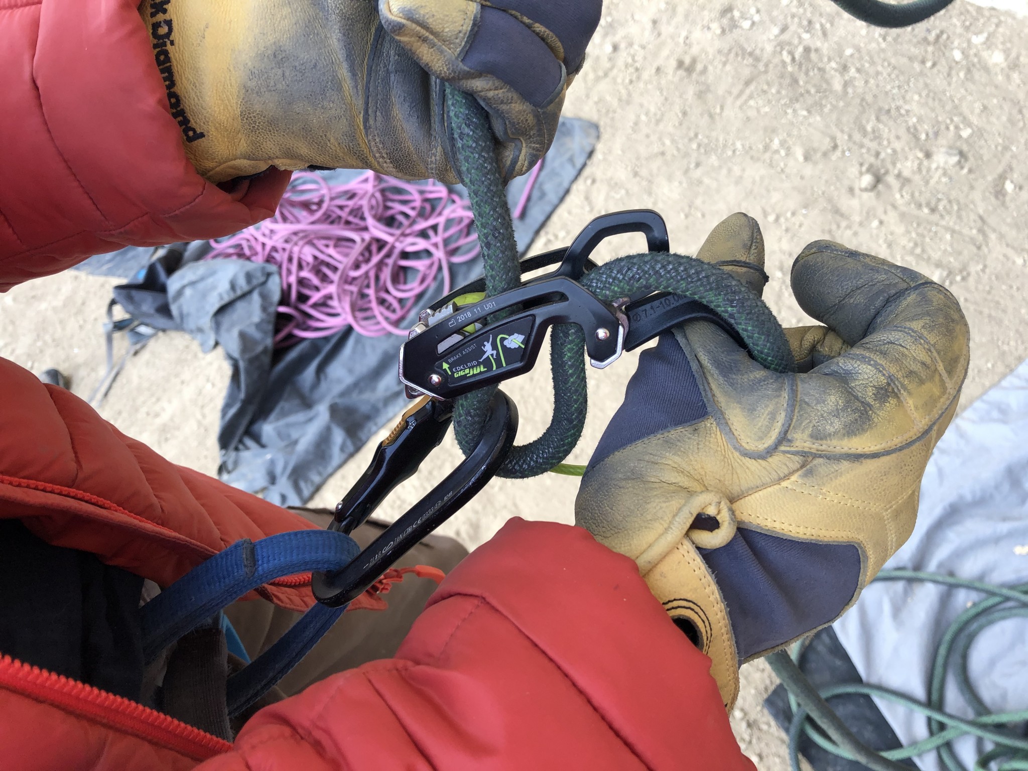 Top rope belaying with the Black Diamond ATC Pilot. The passive assisted braking devices require a solid brake hand on the rope at all times (as do all devices really).